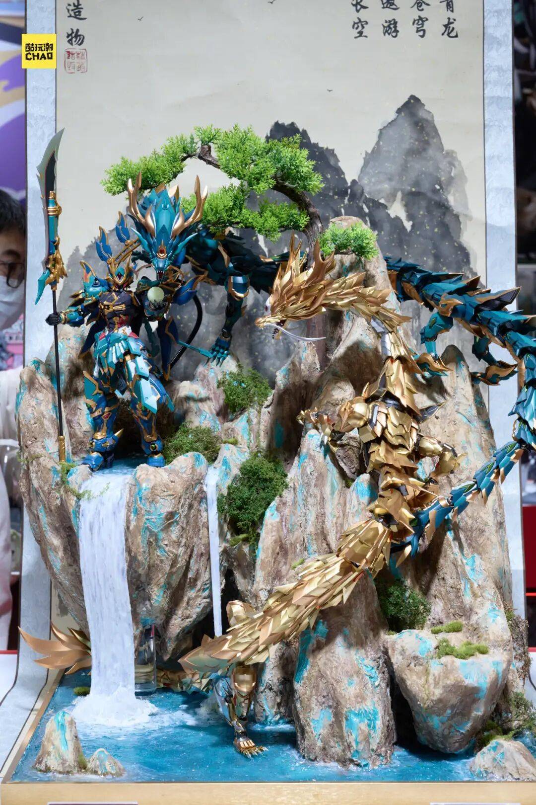 展位上首先映入眼帘的就是由机甲神龙、山水模型和水墨画构成的场景,满满的国风。