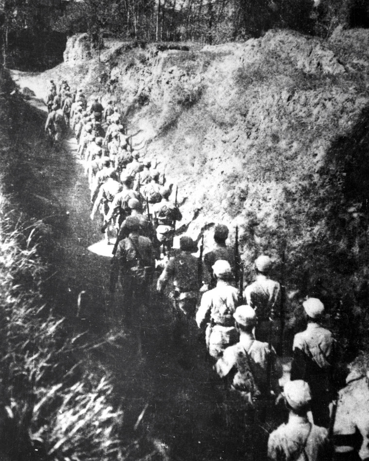 这是1937年9月,八路军第115师主力开赴平型关前线。新华社发(资料图片)